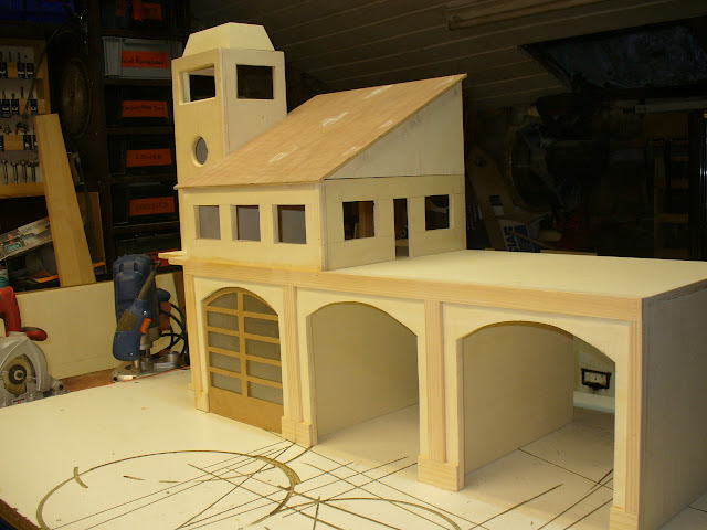 Deux triangles de contreplaque, seront reliés par des poutres en tasseaux. Puis un toit en contreplaqué de 5mm sera posé par dessus. Des morceaux de baguette plate, serviront de guide pour que le toit s'adapte parfaitement au reste de la caserne.